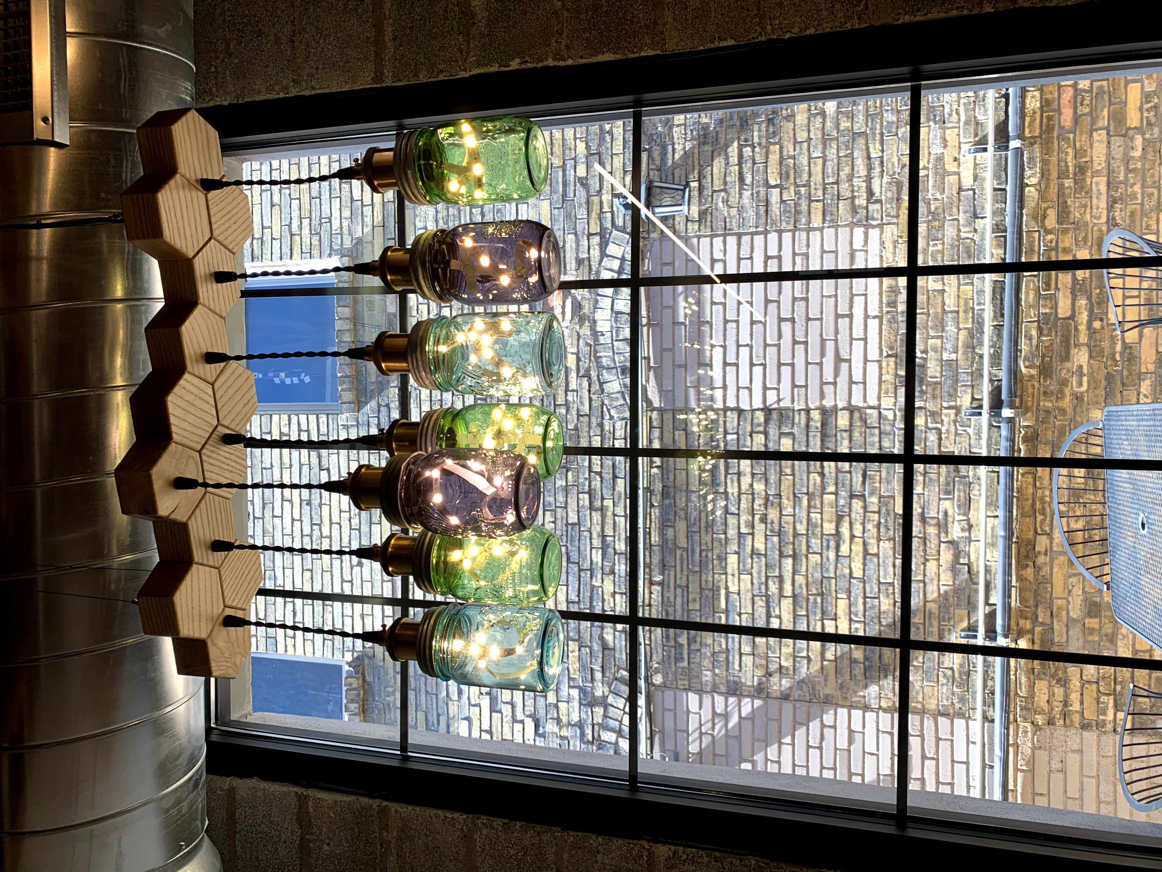 Firefly lights – White ash honeycomb, Bell mason jars, LED strip remnants